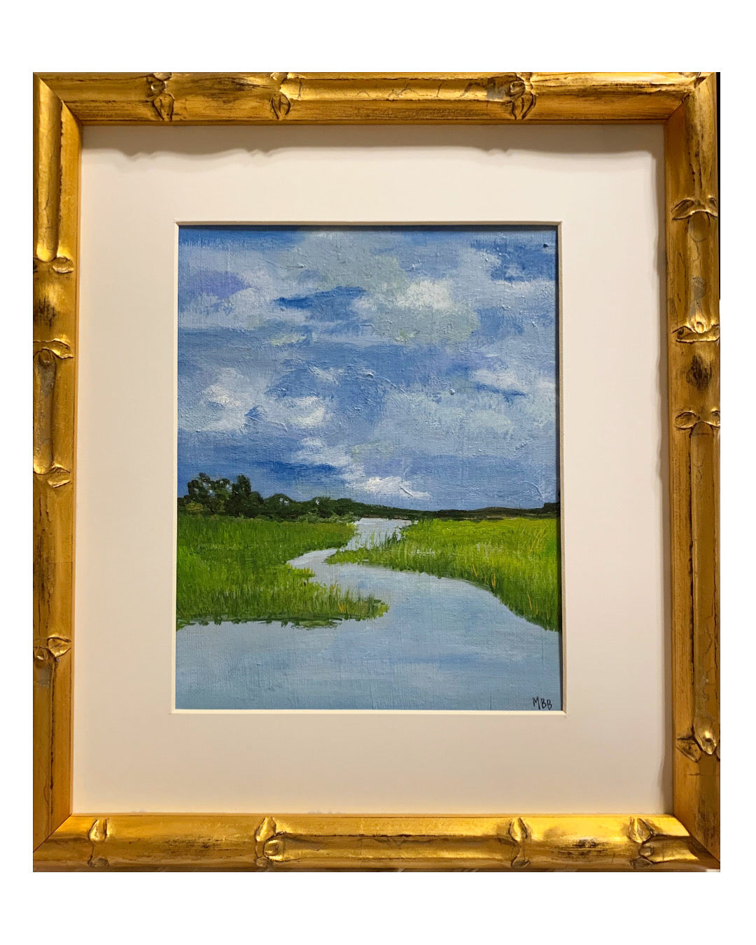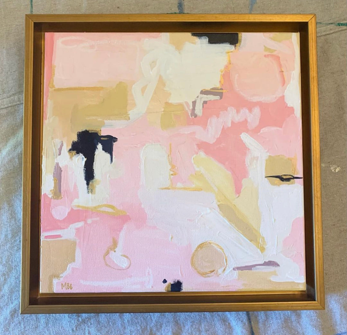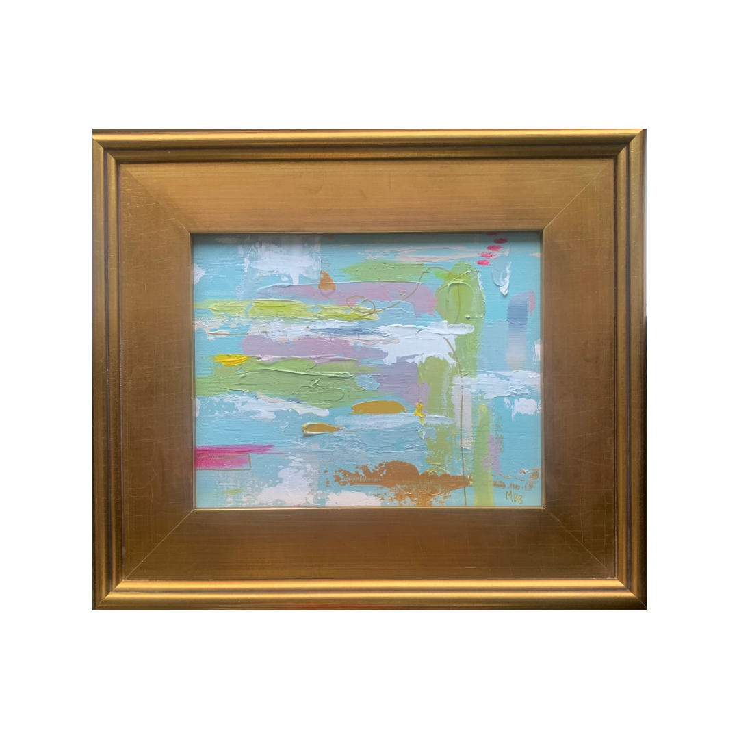 Mary Bradlee uses acrylic and mixed media on canvas, canvas boards and acrylic paper. She loves gold, and often incorporates hints of gold in her pieces. She also frames a lot of her work in rich, gold frames...because why not? Gold makes everything better!