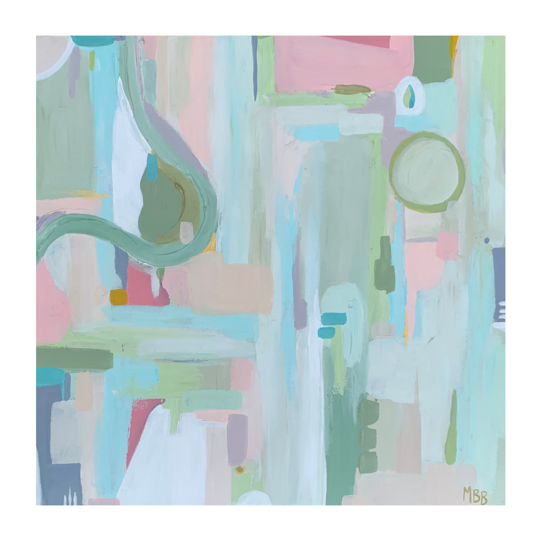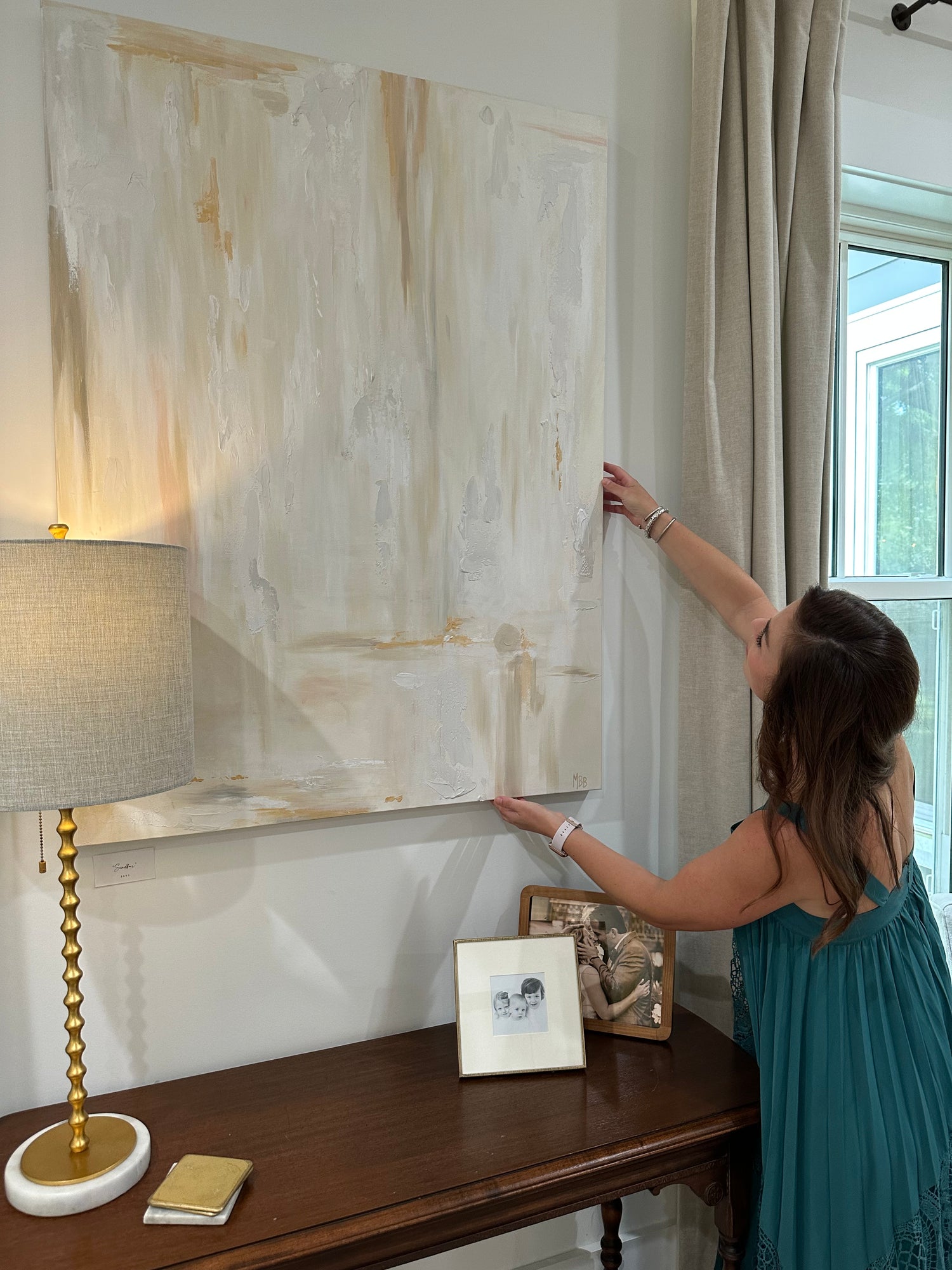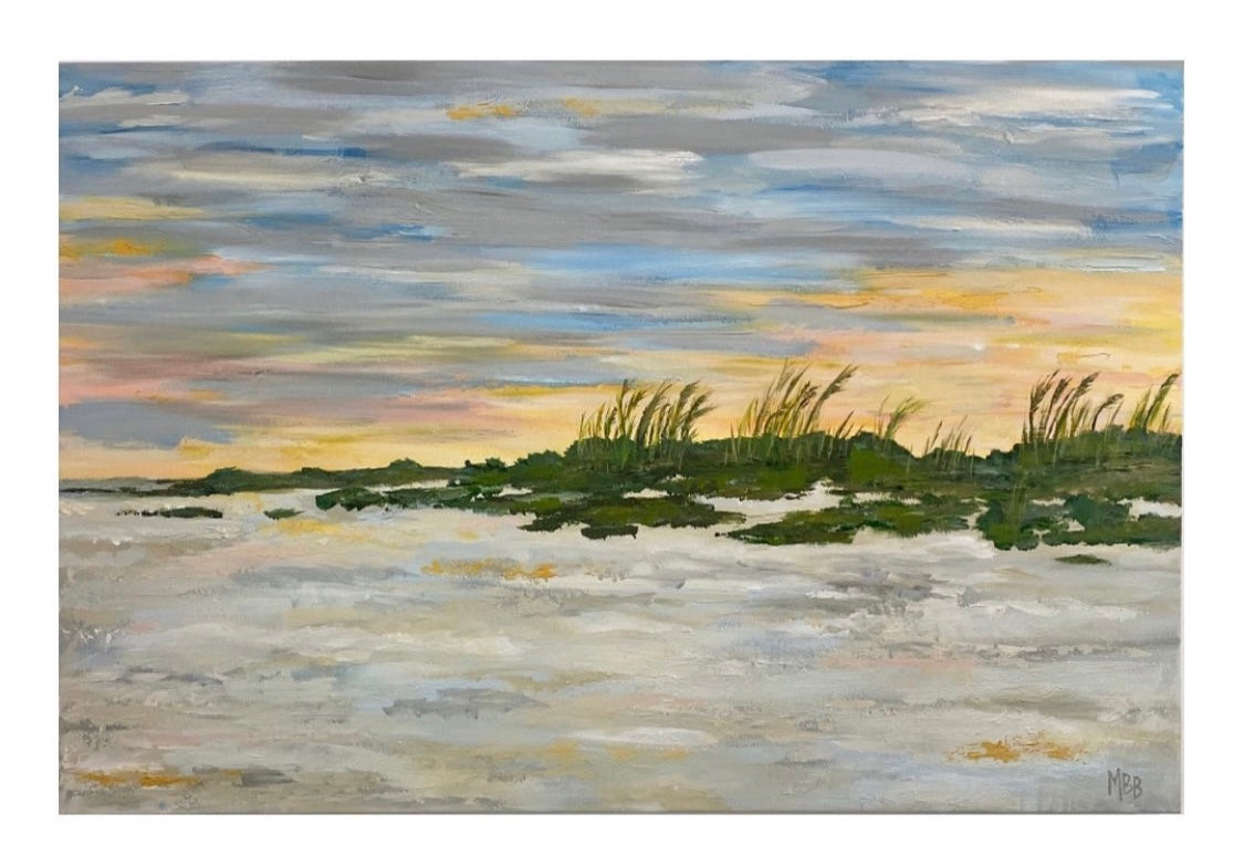 Mary Bradlee uses acrylic and mixed media on canvas, canvas boards and acrylic paper. She loves gold, and often incorporates hints of gold in her pieces. She also frames a lot of her work in rich, gold frames...because why not? Gold makes everything better!