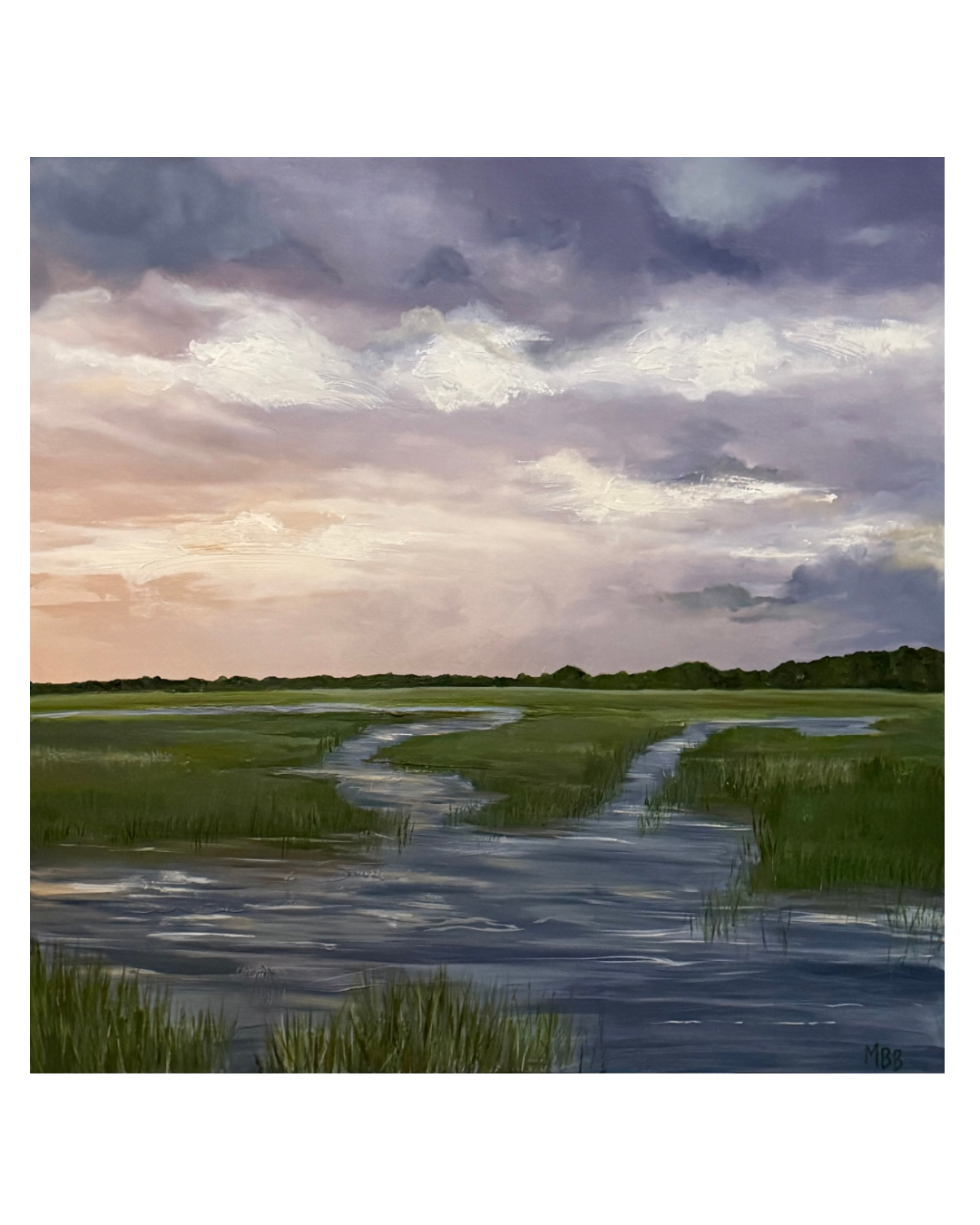 Mary Bradlee uses acrylic and mixed media on canvas, canvas boards and acrylic paper. She loves gold, and often incorporates hints of gold in her pieces. She also frames a lot of her work in rich, gold frames...because why not? Gold makes everything better!